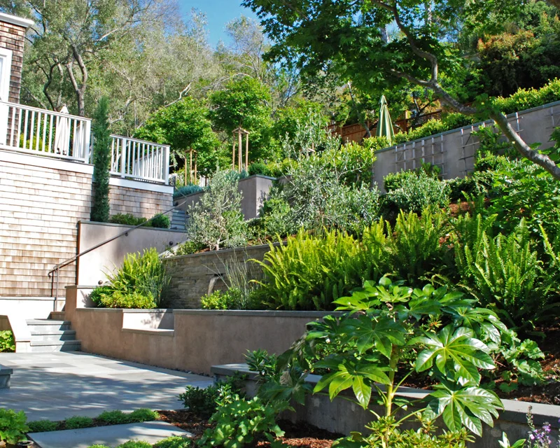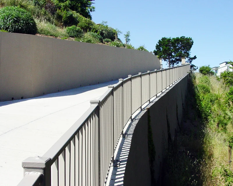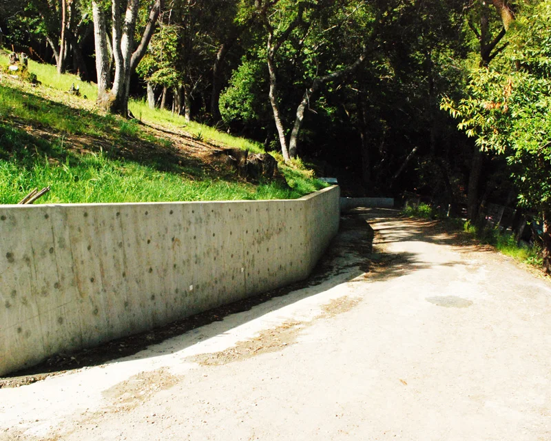 When building on steep terrain, retaining walls provide the necessary support for new or old structures. In many parts of the Bay Area houses are built on hillsides. If the soil gives way during an earthquake or storm, these homes run the risk of sliding down the steep slopes, possibly even damaging other houses. As a preventive measure, retaining walls can support the foundations of these homes. Furthermore, they can be used to reinforce driveways, basements, patios or wine cellars on steep terrain.